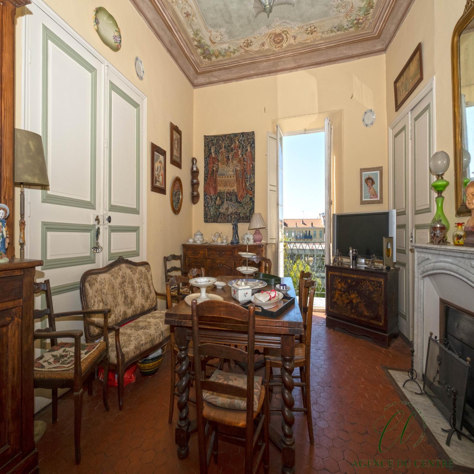 Belles prestations : résidence sécurisée, traversant Sud/Nord, beaux parquets en pointe de Hongrie, cheminée en marbre, fresques au plafond...